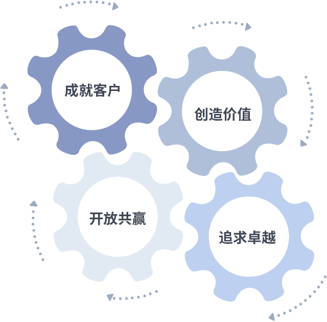 成就客户是一切决策的出发点,,,,创造价值是衡量所有工作的标准,,追求卓越是Z6·尊龙凯发做事做人的态度,,,开放共赢是Z6·尊龙凯发的格局也是最终的结果。。。。价值观的齿轮环环相扣,,推动着组织里的每个人不断向前。。